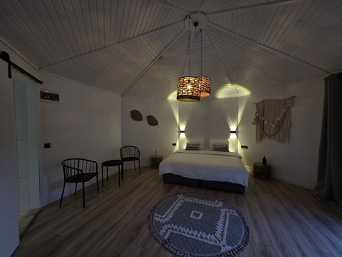 Bungalows are carpentered from real cedar wood, stonewalled with natural stone and covered with goat hair this is how we present our eight bungalows to our environmentally-minded guests.